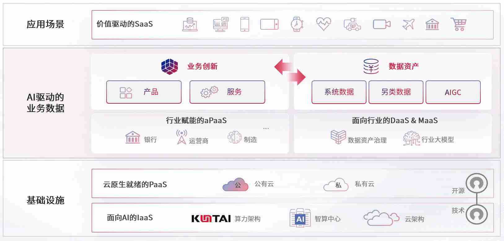 数字时代,,,围绕企业数字化转型的关键要素,,,,z6com尊龙数码开创性的提出数云融合战略和技术体系框架,,,,着力在云原生、、、数字原生、、AI原生和信创产业上架构产品和服务能力,,,,为处在不同数字化转型阶段的快消零售、、、汽车、、、、金融、、、医疗、、政企、、教育、、运营商等行业客户提供泛在的敏捷IT能力和融合的数据驱动能力,,,,构建跨界融合创新的数字业务场景和新业务模式,,助力企业级客户建立面向未来的核心能力和竞争优势,,全面推动社会的数字化、、、智能化转型升级。。。